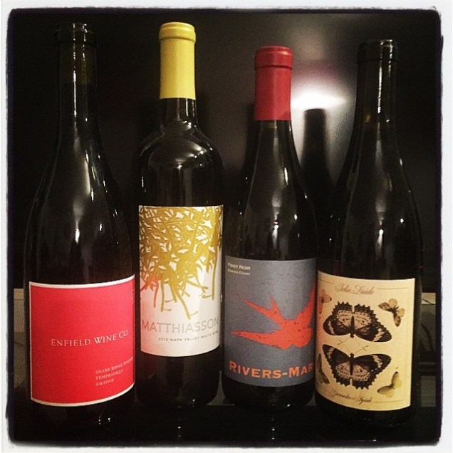 My first #wine delivery of 2015 is all about California. {enfield tempranillo, matthiasson napa white, rivers-marie Pinot and jolie-laide grenache/syrah} #happiness #noterroirsttilt